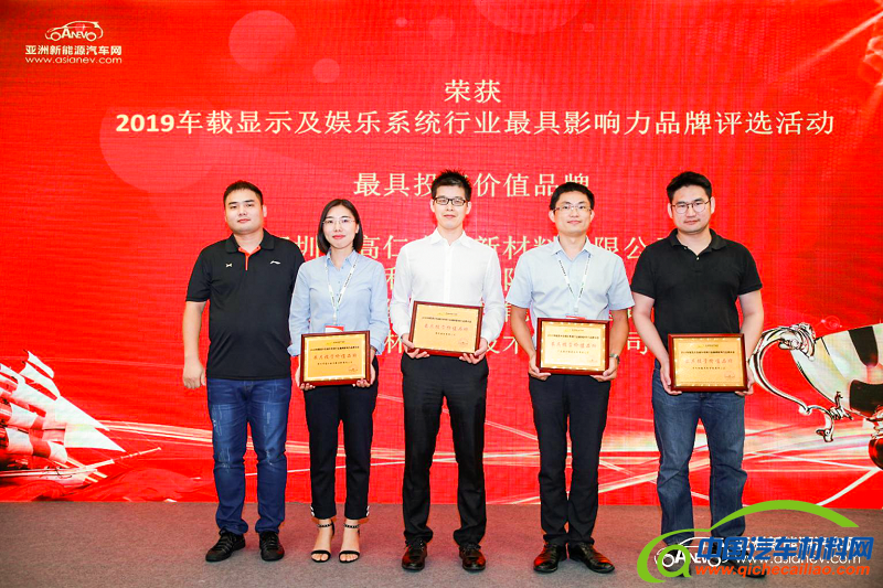 荣获2019年度车载显示及娱乐系统行业最具影响力品牌评选“最具投资价值品牌”企业:深圳市高仁电子新材料有限公司、信利国际有限公司、深圳创维汽车智能有限公司、广东泉林触显技术有限公司。
