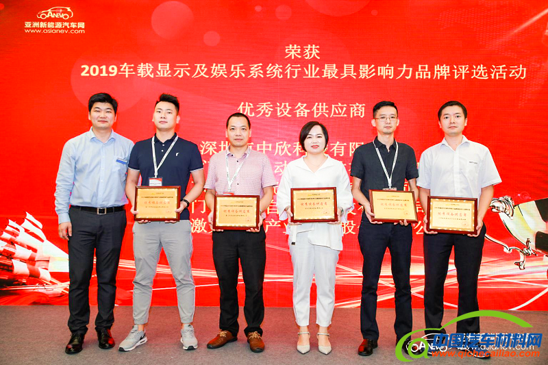 荣获2019年度车载显示及娱乐系统行业最具影响力品牌评选“优秀设备供应商”企业:深圳市中欣科技有限公司、厦门力巨自动化科技有限公司、东莞雷云光电技术有限公司、厦门市泽睿自动化科技有限公司、大族激光科技产业集团股份有限公司。