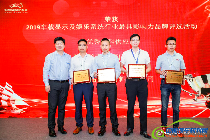 荣获2019年度车载显示及娱乐系统行业最具影响力品牌评选“优秀材料供应商”企业:德莎胶带(上海)有限公司、瓦克化学(中国)有限公司、杜邦中国集团有限公司、惠州市德佑威新材料有限公司。