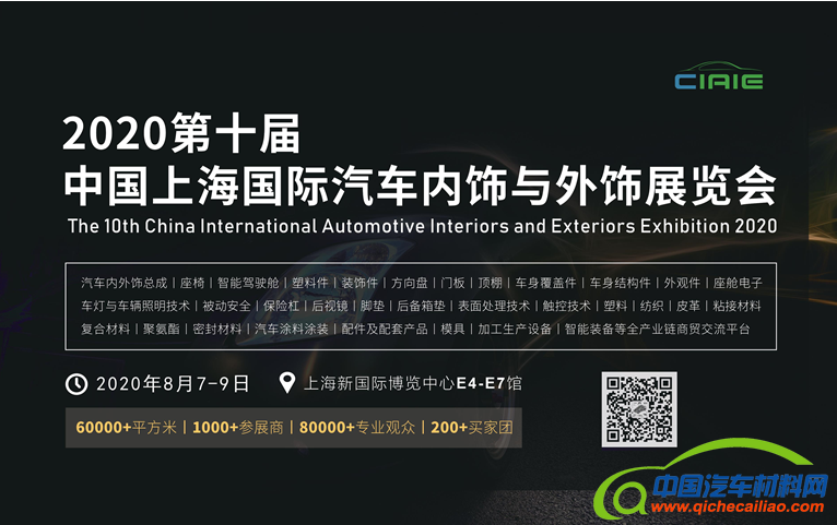 2020第十届中国上海国际汽车内饰与外饰展览会,2020年8月7-9日继续在上海新国际博览中心与您再相见,共享行业新产品、新技术、新材料、新设备、新动向。期待您的加入!