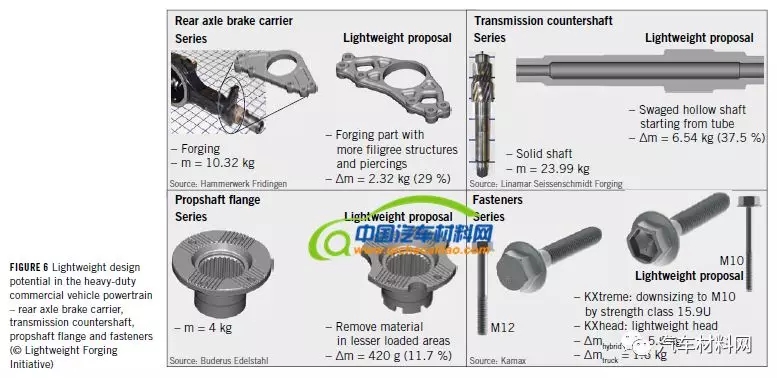Kamax通过使用内部六角形部件看到紧固件头部的轻量化潜力,这也可在装配过程中带来优势。考虑到耐氢脆等问题,使用强度等级为15.9U的高强度材料也可以显著减轻重量。如采用新日铁通的具有良好抗氢脆性的高强钢,也可以实现轻量化。综上,本研究发现该重型卡车的减重潜力高达124千克。