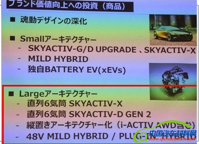 【中国汽车材料网】近日据海外汽车媒体报道,马自达品牌将推出纵置的直列6缸创驰蓝天SKYACTIV-X发动机和D柴油发动机,并同步更新为后驱驱动方式,且将率先应用于马自达6车型中,或在明年正式亮相。