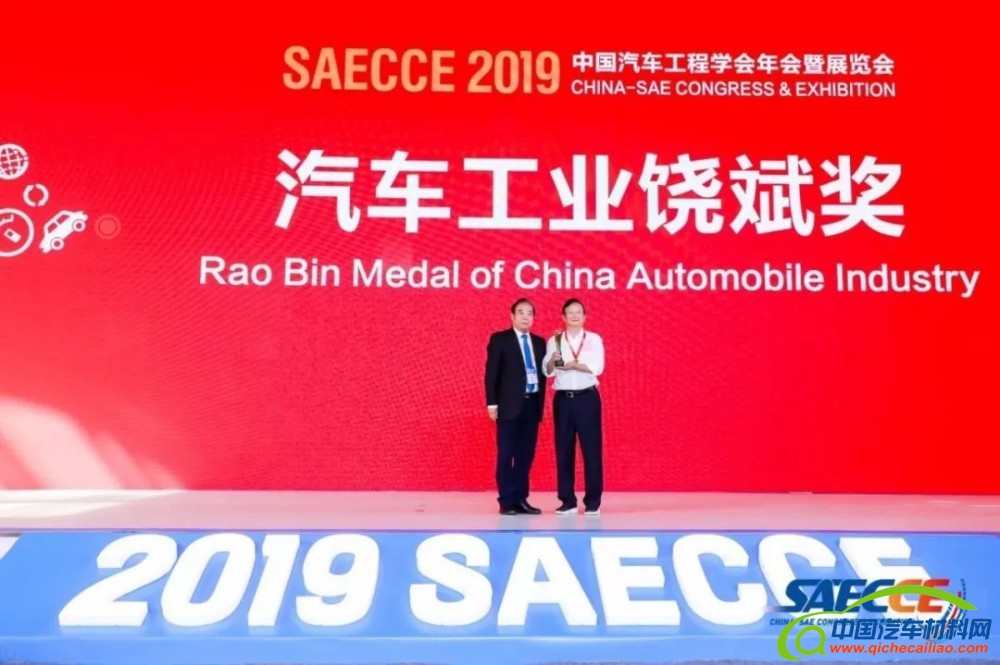 会上,由中国汽车工程学会名誉理事长付于武先生为其颁发了饶斌奖。
