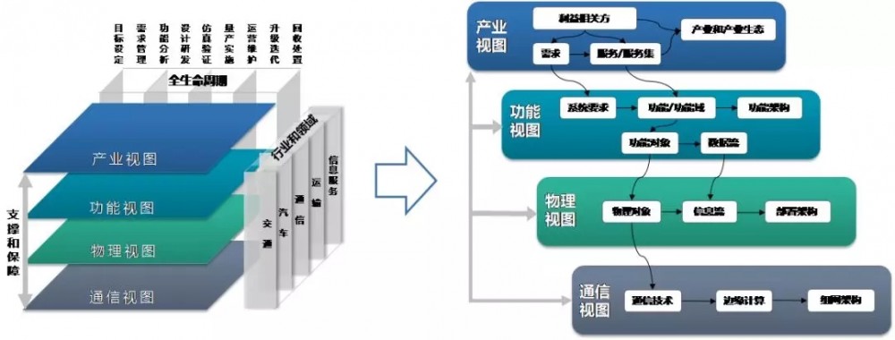 因此,为支持智能网联汽车中国方案的构建、为复杂系统的总体设计、重构设计和中国标准体系完善提供基础支撑、推动汽车、交通和信息技术链和产业链的转型升级,国家智能网联汽车创新中心组织开展智能网联汽车信息物理系统架构研究。《智能网联汽车信息物理系统参考架构1.0》作为阶段性成果,构建了支持车路云协同控制、面向业务可灵活定制、技术中立可持续演进的设计方法和参考框架,从产业、功能、物理和通信四个视图描述架构,形成基于参考架构的模型/模型库、设计工具。