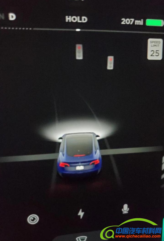 『配图为特斯拉车机系统识别出红绿灯状态』