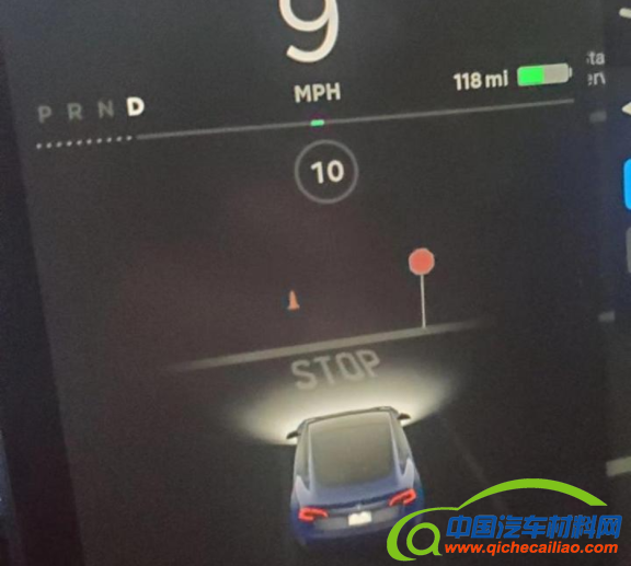 『配图为特斯拉车机系统识别出停车标识』