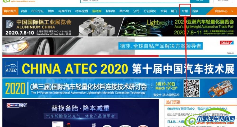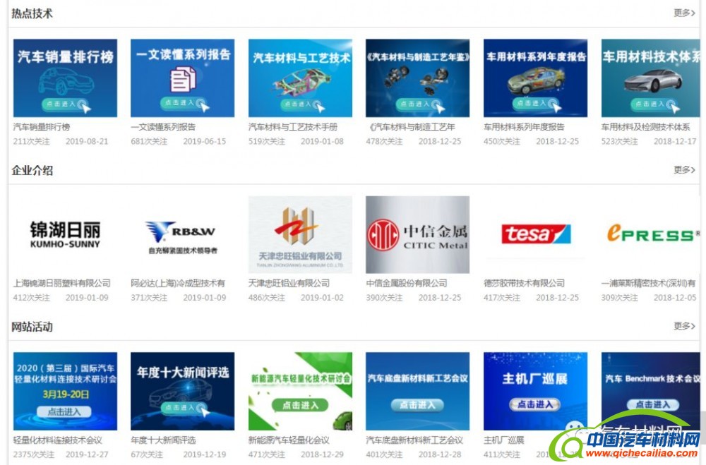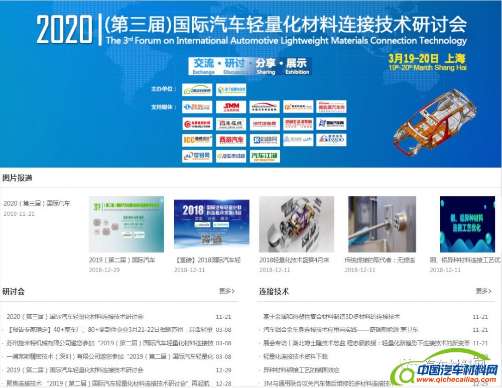 网站活动:中国汽车材料网多年来专注于汽车材料领域,为汽车行业从业人员提供专业的技术交流和产品展示平台。每年会根据行业需求结合热点技术,举办各类专业技术研讨会,获得了众多行业专家及企业参与,包括“汽车Benchmark技术研讨会”“新能源汽车轻量化技术研讨会”“国际轻量化材料连接技术研讨会”等。“专题”版块将会议进行集中展示,方便大家更好的查询历届会议详情,了解会议报告主题,掌握会议核心技术。