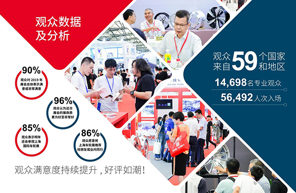 CIWE上海国际车轮展历经多年的成长发展,已成为会晤车轮领域贸易买家及海外企业拓展中国市场的首选平台。2019年,上海国际车轮展再度取得了颇具标杆意义的突出成就,携手上海国际汽车内外饰展览会汇集了来自23个国家和地区的503家企业参展,展会面积达25,000平方米,共有来自59个国家和地区的56,492位专业观众莅临参观。