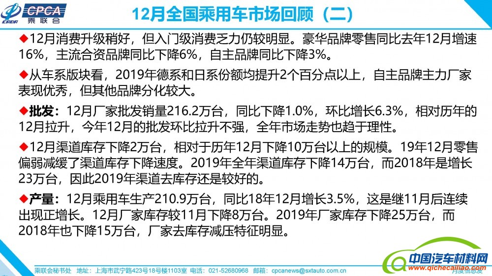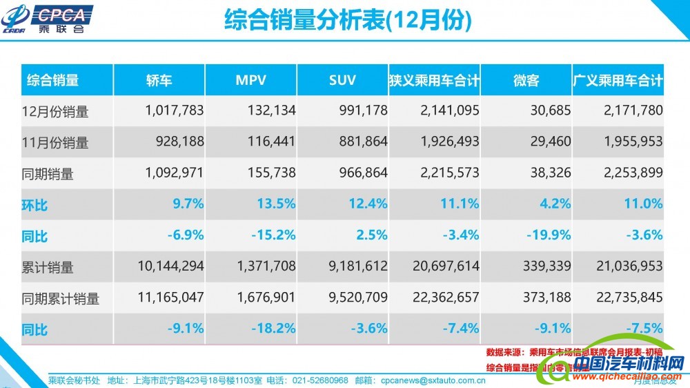 【销量】2019年12月份全国乘用车市场及1月市场分析