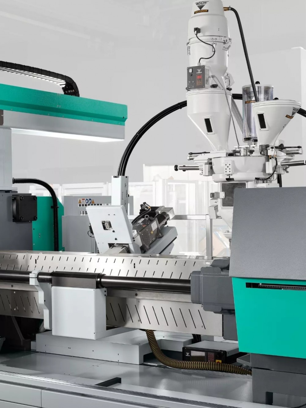 固定在注射单元上的FDC装置包括集成了切割装置的侧喂料器、一个适配的气缸和一种特殊的螺杆结构。