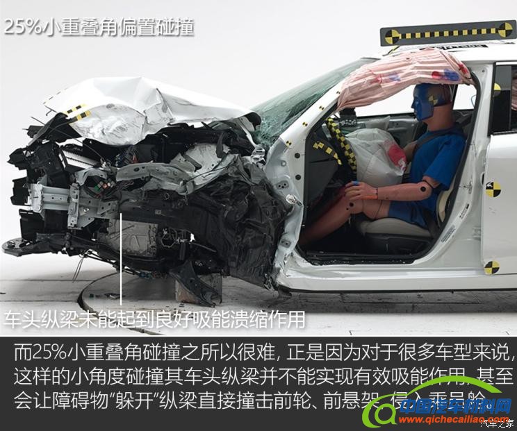 这项测试可以说是很多车企的“噩梦”。最早是从美国IIHS开始,据统计在发生正面碰撞的时候,当正面碰撞重叠角小于25%时,纵梁不能起到充分吸能作用,引起很高的致伤风险,而后IIHS就有了这项测试,很多品牌车型折戟于此,我国的“中保研”碰撞测试也借鉴了该测试条件,发现很多车型存在这样的被动安全隐患,进而引起较高关注。
