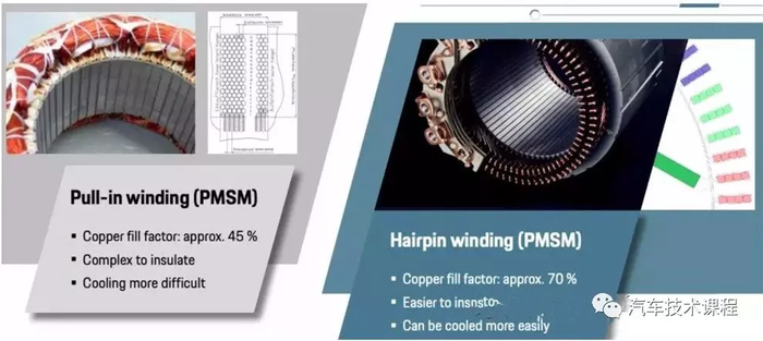 Taycan 电机采用hairpin女性扎辫子方式,这个方式对于传统方式更加高了性能和效率,但在高速的时候容易导致交流的流失而且产生性能问题所以在早期设计特别注意。但hairpin 的方式不是保时捷独有,很早之前通用和本田在他们的Volt和PRIUS上已经使用。