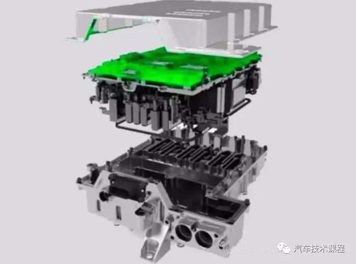 下图同样为前轴电机。逆变器装配在电机上部。