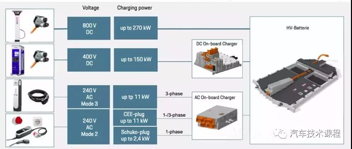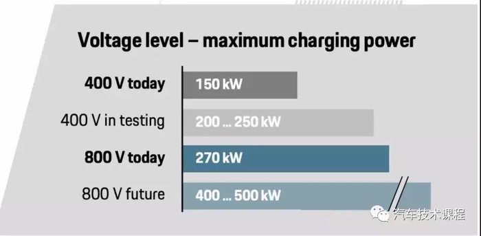 Taycan 采用800v的架构从而实现效率,性能以及充电速度更快。他的整车质量达到了2313kg 这个比I PACE和Tesla model s 都要重。按照当前400V电动车快充折算Taycan 能够达到270kw的快充但是其实为了达到电池寿命的保护这是不可能的。但是保时捷电池的head说他们准备的这个800v的架构其实可以达到400v更多的峰值充电功率,只要未来电池技术更好了。