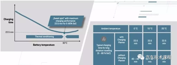 所以保时捷表示在30度时候是他的最佳充电温度能够达到他广告宣传的270kw 和22.5分钟充到80%的目标。不在这个温度区间时候他的电池热预热系统起作用,同时会根据驾驶员的意图去判断,例如你导航到一个快充的地方,这个时候他的充电管理系统会让电池温度保持在最佳温度及时当时环境温度为0度左右。