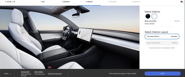 交付地点似乎对时间安排没有太大影响,因为美国各地的Model Y买家都已收到三月份交货的订单确认。但是,本月早些时候进行的第一批确认并没有包含白色内饰和7座配置的预定。