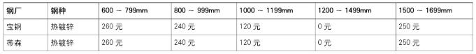 表1 卷宽价格差异