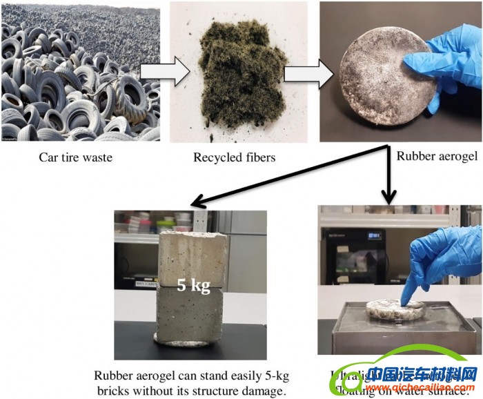 由新加坡国立大学Duong Hai-Minh副教授和Nhan Phan-Thien教授领导的团队首先将废弃的汽车轮胎切成细橡胶纤维。然后将那些纤维浸入由水和少量“生态友好型”溶剂组成的溶液中,后者使纤维彼此交联。机械搅拌该混合物20分钟,形成凝胶,其中连接的纤维均匀地悬浮在其中。然后将该凝胶倒入模具中,并在-50ºC(-58ºF)的温度下冷冻干燥12个小时。