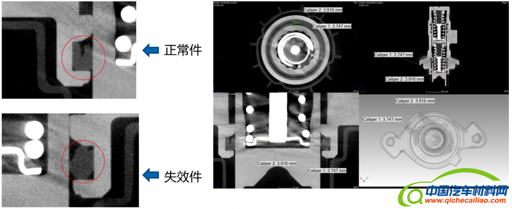 某汽车制动泵,使用时发现有漏油现象,客户需要确定具体的失效原因和位置,我们推荐工业CT,扫描后通过分析和比对,从而确定底部油封严重形变导致产品漏油。