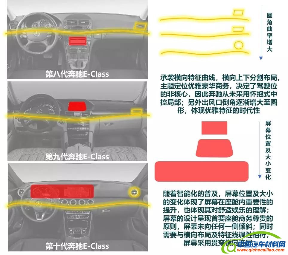 智能化和网联化带来更多的功能,更复杂的人机交互要求。过去十年屏幕始终是人机交互最为关键的载体,随着屏幕尺寸的增大、屏幕数量的增加,内饰布局也在不断演变。不仅仅是特斯拉,奔驰的内饰布局也在不断向屏幕妥协。短期内屏幕的“核心地位”不会改变。