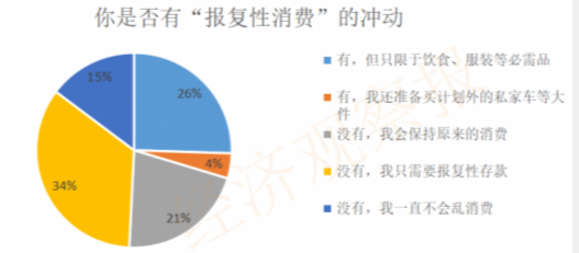 而在经济观察报和新浪财经关于“是否有‘报复性消费’冲动”的调查中,共收集到有效样本数量为6906份,调查结果显示,只有4%的受调查者表示新增了计划外的汽车类大件消费。当然,我们并不能简单的把4%的新增套用在14亿人口的基盘上——趋势不等于是最终的数据展示。