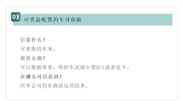 根据当今汽车技术的进步,未来的新车技术的变化将围绕安全、个性化和功用三大方面,主要有以下八大革命性变化。