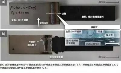 【中国汽车材料网】将塑料或碳纤维增强塑料与金属接合在一起,通常需要使用胶粘剂或螺栓、铆钉等机械工具。然而,这些接合工艺有几种不足之处,如挥发性有机化合物(VOC)排放的环境限制、粘合时间较长,螺钉或铆钉也会增加重量。因此,有团队开发出激光辅助直接焊接金属和塑料(LAMP)的技术。通过使用连续波(CW)Nd:YAG激光器、半导体激光器、光纤激光器或碟片激光器等,该技术能迅速而牢固地将诸如钢、不锈钢、铝合金在内的金属与工程热塑性塑料(例如聚酰胺PA、聚对苯二甲酸乙二醇酯PET和聚碳酸酯PC)接合起来。