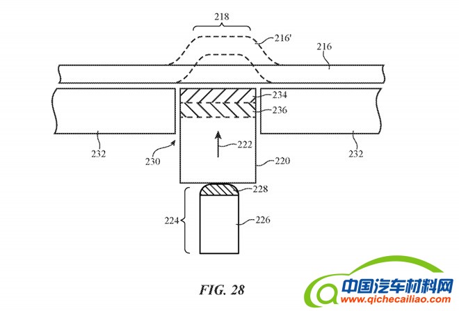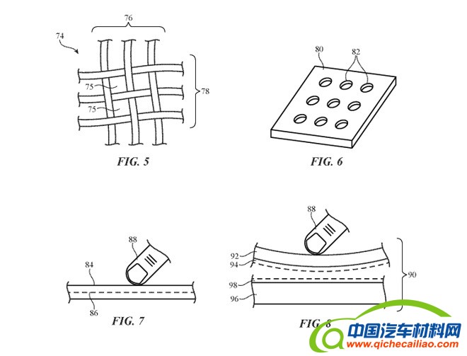在这项专利核心部分,苹果公司建议为显示屏搭配一个覆盖层,将其隐藏起来,作为车辆总体设计的一部分。该覆盖层可以包括一些元素,比如接受输入的力和触摸传感器,以及电子百叶窗等。覆盖层本身可以被涂上涂层,使其看起来像是由皮革、织物、木材、塑料、金属、纤维复合材料和其他物质制成的,这表明这个想法可以适用于各种汽车内饰设计。最关键的是,该覆盖层可以通过使用极薄的外部覆盖材料,或者包括穿孔让光线透过。