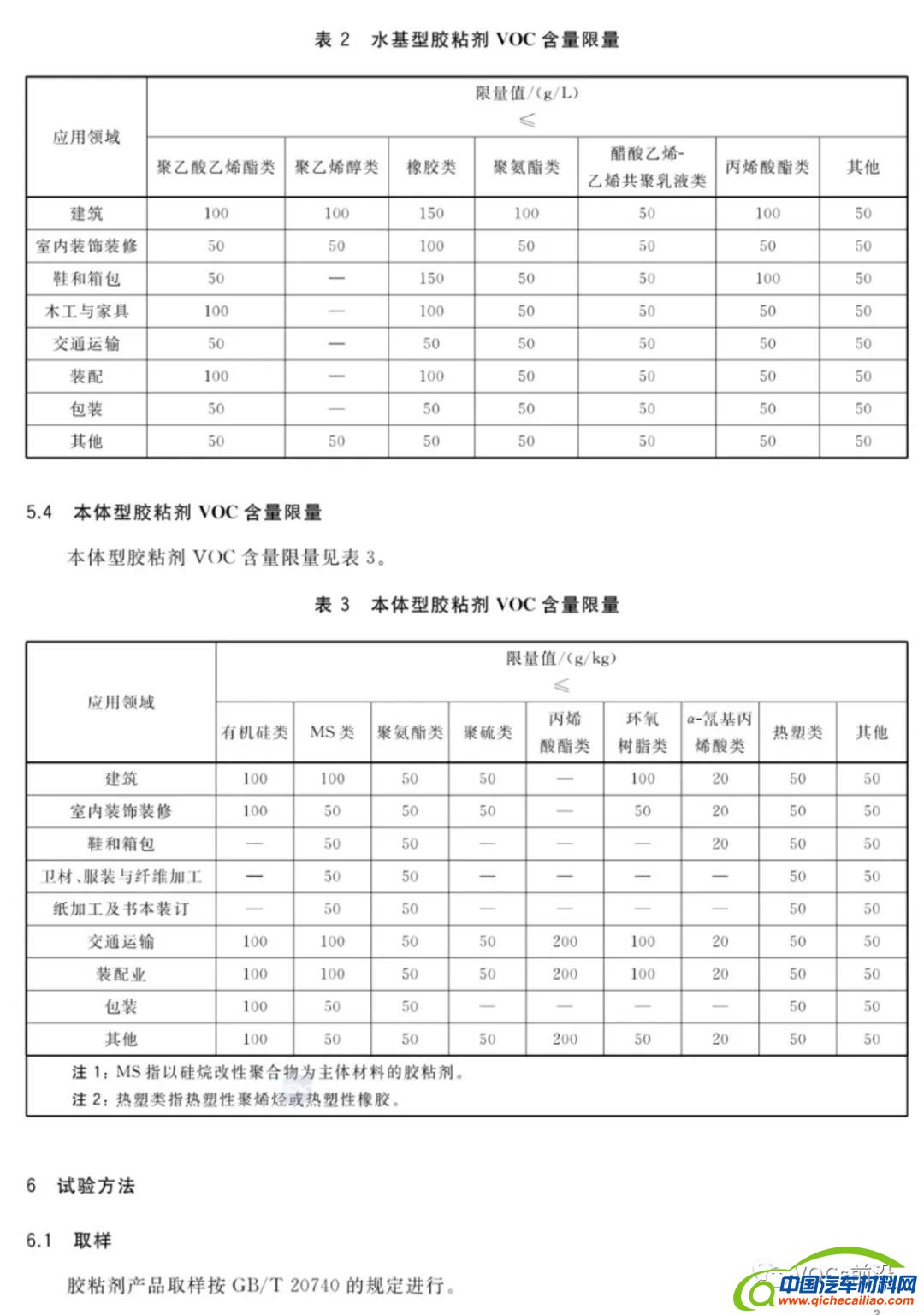 胶粘剂挥发性有机化合物限量(GB 33372-2020)