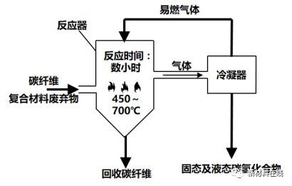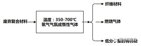 高温热解法是通过空气或惰性气体热量将复合材料的树脂基体分解为氢气、甲烷、碳氢化合物等气体以及低分子量的有机物。