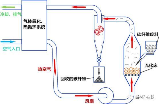 流化床工艺是指在流化床反应器内用空气作流化气体,在一定的温度下,将纤维与基体分离的方法。
