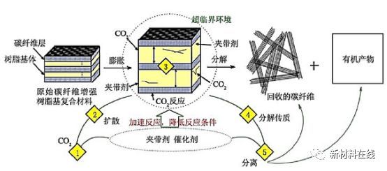 超/亚临界流体技术是利用流体在超临界条件下具有高活性、强溶解性、优异的流动性、渗透性、扩散性等性质,对聚合物基复合材料进行降解。
