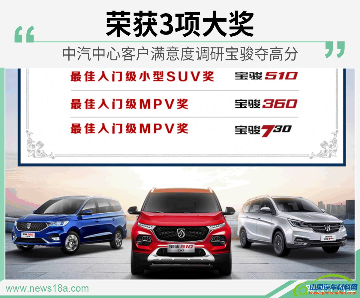【中国汽车材料网】日前,中国汽车技术研究中心公布了2019-2020年度中国汽车行业客户满意度调研结果。网通社了解到,宝骏510、宝骏360、宝骏730在此次调研中分别获得最佳入门级小型SUV及最佳入门级MPV奖项。
