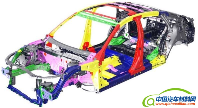 2019年本田Insight采用了新一代先进兼容性工程™(ACE™)车身结构,大量使用340,440,590,780,980和1500 MPa等级的高强钢。根据其拉伸强度(MPa),铝制发罩和钢制部件)进行颜色编码。其中,还用到了激光拼焊板。