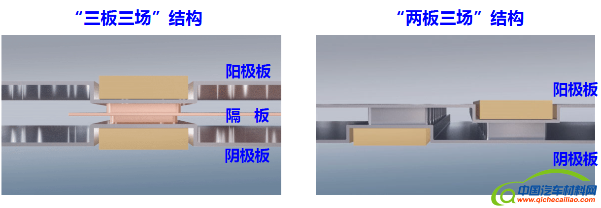 日本、欧洲企业生产的金属双极板都采用“三板三场”结构设计,即用阳极板、隔板、阴极板将氢气场、氧气场、冷却液流场隔开。能否简化这种结构,去掉隔板,改为“两板三场”?在研发早期阶段,交大团队提出了这一原创构想。“三块板的用料比较多,不仅增加了成本,而且分量也重,这样就会影响燃料电池的功率密度。”特等奖项目第六完成人、上海治臻总经理蓝树槐博士解释说。
