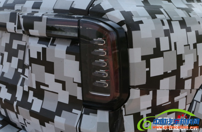 从侧后方观察,新车方正的造型与后腰线的外凸式设计,进一步强化了硬朗的风格气质,而上小下大的分体姿态,则有助于降低车尾的视觉重心,使整车更具稳重感与层次感。