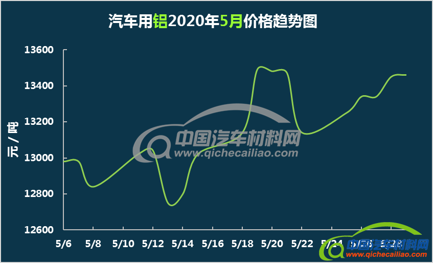 汽车用铝5月价格波动较多,但总体呈上涨趋势。月度最高价为13490元/吨,最低价为12750元/吨。5月份汽车用铝均价为13166.11元/吨,环比上涨9.20%,同比下跌7.44%。