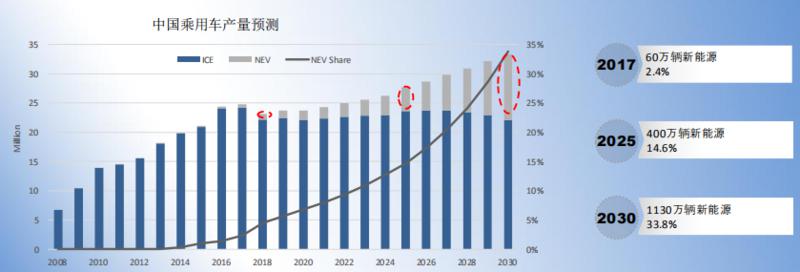 据预测,中国的新能源汽车产量未来将强劲增长,到2025年将达到410万辆,到2030年将达到1130万辆,新能源汽车的铝消费总量预计2025年可达90万吨,到2030年可达320万吨。