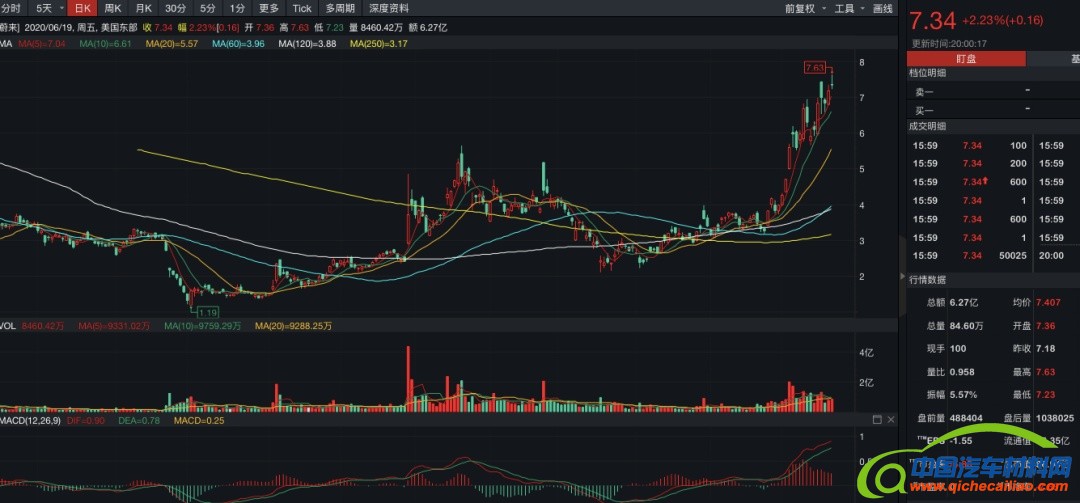 回到2019年上半年,蔚来汽车给外界普遍印象是“不看好”,2019年6月,因电池自燃隐患,蔚来汽车召回了4800多辆ES8,2019年上半年又爆出巨亏59.37亿元,后续更是传出裁员等消息,蔚来汽车如掉入“冰窟窿”,其股价一度跌到1.19美元/股,市值也一度跌到14.1亿美元(约99.69亿元人民币)。经过近一年的时间,蔚来似乎已经扛住了各种考验。今年以来,蔚来股价一路上扬,最新收盘价7.34美元/股,市值攀升至最新的86.94亿美元(614.73亿元人民币)。