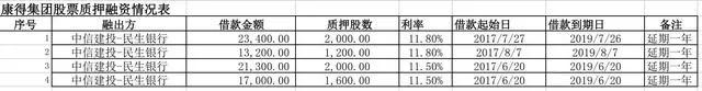 注:方同提供的康得集团向民生银行股票质押融资的统计
