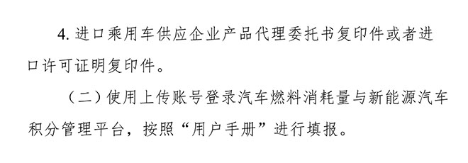 乘用车企业应当按照工业和信息化部的要求(见附件1),报送其生产、进口的乘用车燃料消耗量和新能源乘用车相关数据;通过汽车燃料消耗量与新能源汽车积分管理平台,开展积分转让或者交易。