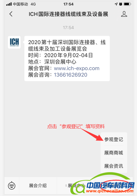 关注 ICH Shenzhen 微信公众号,在页面右下角点击观众专区,再点击参观登记填写资料。