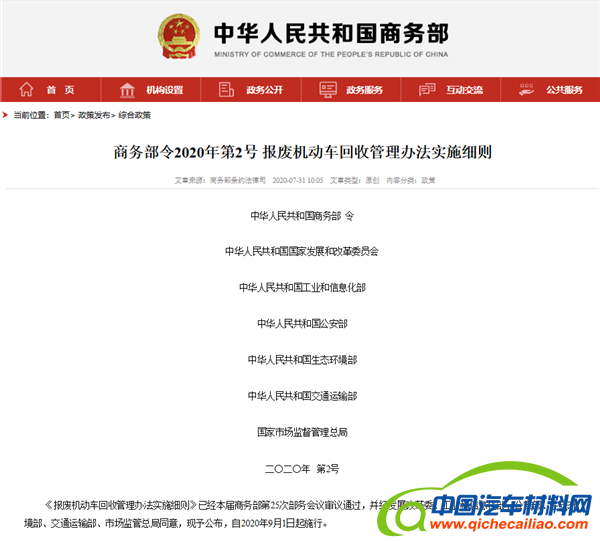 ♦新增新能源汽车拆解规定 加强信息化管理
