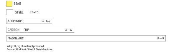 然而,钢材之间也有区别。SSAB拥有世界上最清洁的钢铁制造工艺之一,通过使用先进或超高强度钢材,可以进一步减少排放,因为您将使用更少的钢材。