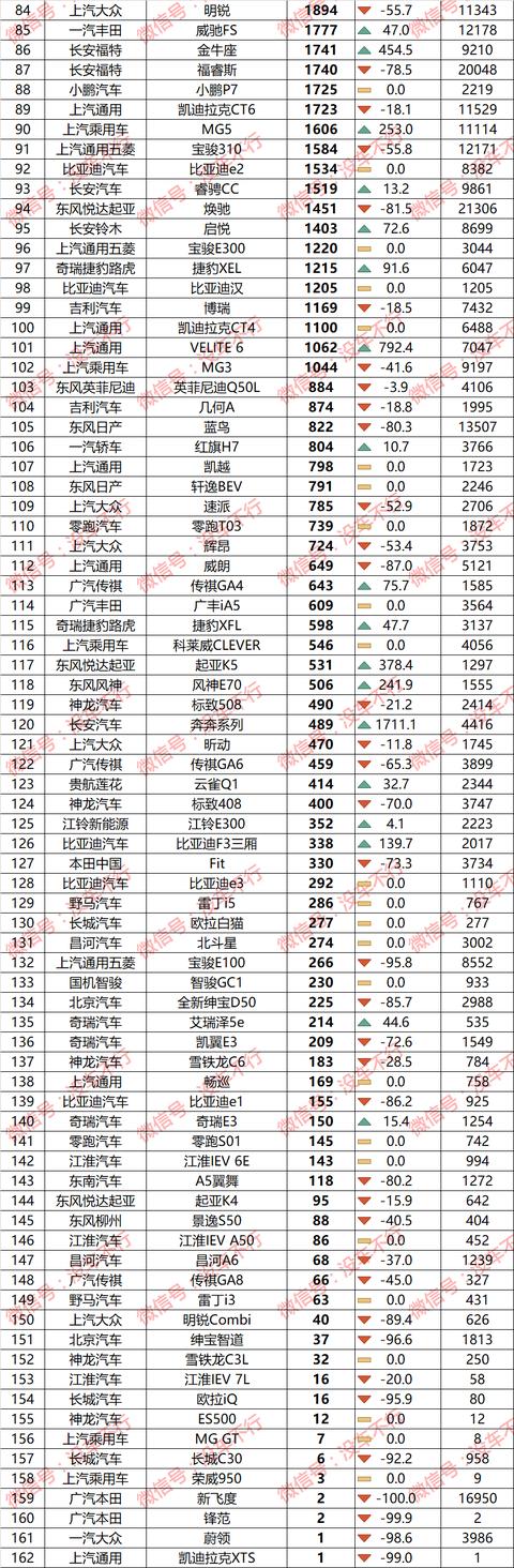 分车型销量排行榜如下: