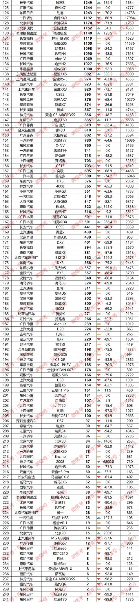 SUV方面,哈弗H6虽然被长安CS75追得很紧,但同比变化上终于呈现了上涨的趋势。