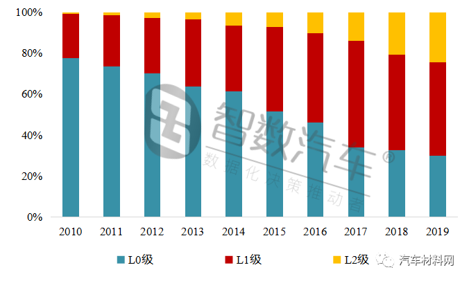 近十年上市车型的自动驾驶级别分布