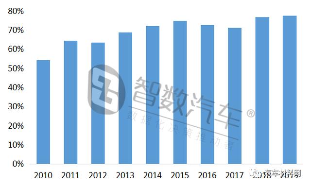 近十年国内铝合金发动机缸体应用比例