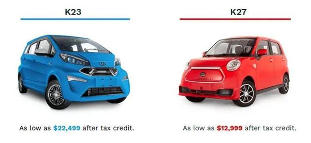 其中,康迪K27定位微型电动车,四门四座车身布局,配备了17.69 kWh锂电池,综合续航里程100英里(160公里),电机最大功率为20千瓦,车辆最高时速为101km/h。康迪K27在美售价19999美元,扣除联邦税收抵免后的价格为12999美元(约人民币9.06万元)。
