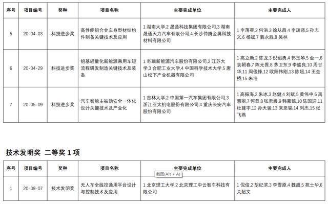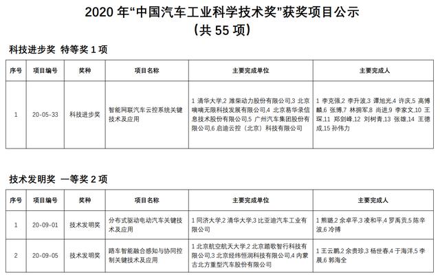 【汽车材料网】2020年度“中国汽车工业科学技术奖”终评会于9月10-11日在江苏镇江成功召开。根据《中国汽车工业科学技术奖励办法》规定,经“中国汽车工业科学技术奖”评审委员会评审,共评出科技进步奖特等奖1项、技术发明奖一等奖2项、科技进步奖一等奖7项,技术发明奖二等奖1项、科技进步奖二等奖9项,科技进步奖三等奖35项,累计授奖项目55项。现对终评结果进行公示,公示期为9月14日-10月13日。公示期内,如对获奖项目内容、主要完成单位、主要完成人有异议的,可向中国汽车工程学会科技奖励工作委员会办公室提出书面异议材料。提出异议者,应写明提出异议的事实依据,以单位名义提出异议的,应写明单位名称、法人姓名、通信地址、联系人姓名、联系人手机并加盖单位公章;以个人名义提出异议的,应签署本人真实姓名、身份证号码、通信地址和手机。凡匿名提出异议以及超出公示期提出异议的,均不予受理。